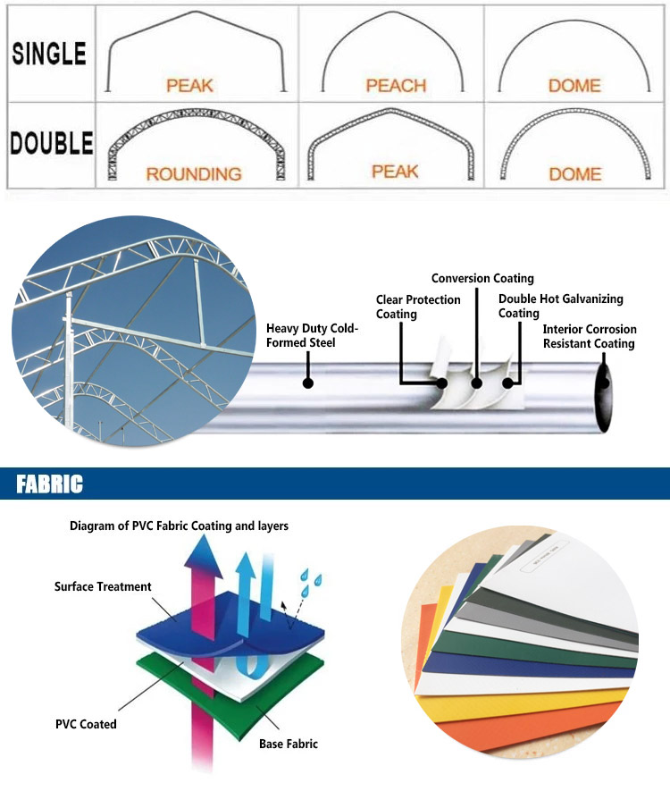 Please refer to the diagram below,we have 300gsm PE,650gsm PVC.750gsm PVC,900gsm PVC,different colors are optional